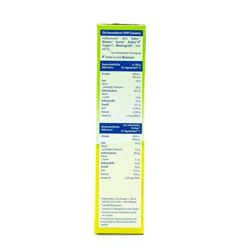 Wholemeal flour* 80% (oats*, wheat*, barley*, spelt*, rye*), wheat semolina*, vitamin B1.